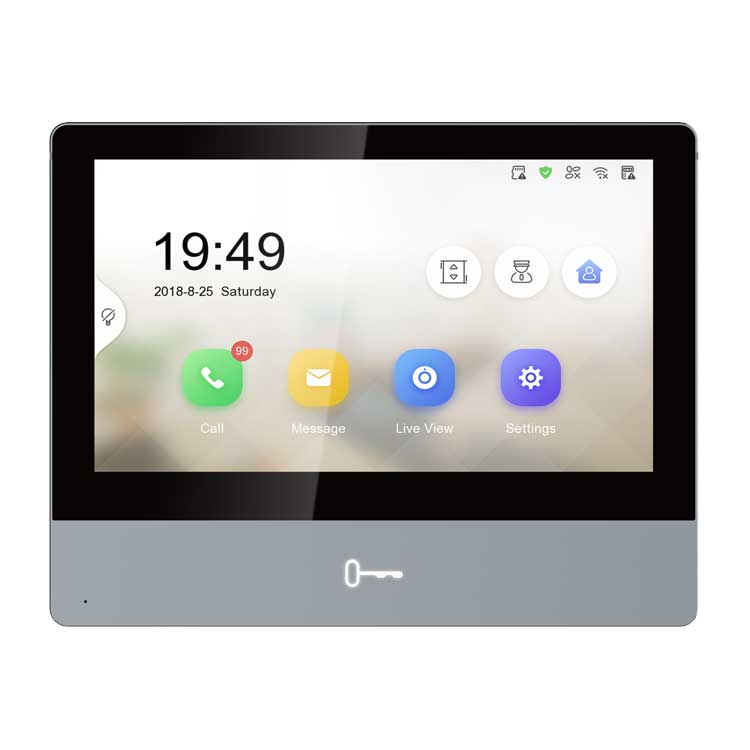 7"" цветной IPS экран с разрешением 1024*600, сенсорные кнопки; встроенные микрофон и динамик; слот для TF карты до 128Гб; тревожные входы/выходы 8/2; 1 RS-485; 1 RJ-45 10M/100M Ethernet; Wi-Fi 802.11 b/g/n, TCP/IP, SIP, RTSP; DC12В/PoE; 10Вт; -10 °C...+55°C; размер 180 × 140 × 22.4 мм; Вес: 355г;"