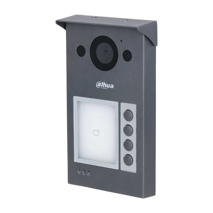 Вызывная панель с разрешением камеры 2мп и CMOS сенсором, угол обзора по горизонтали 125°, алюминевый сплав, уровень защиты IP65, IK08. Поддержка режима "Ночь" и голосового оповещения. Групповые вызовы. С четырьмя кнопками. Видео и аудио сообщения. Удаленный доступ через мобильное приложение DMSS. Установка на стену. Питание: DC 48V, PoE(802.3af), 2-проводной контроллер